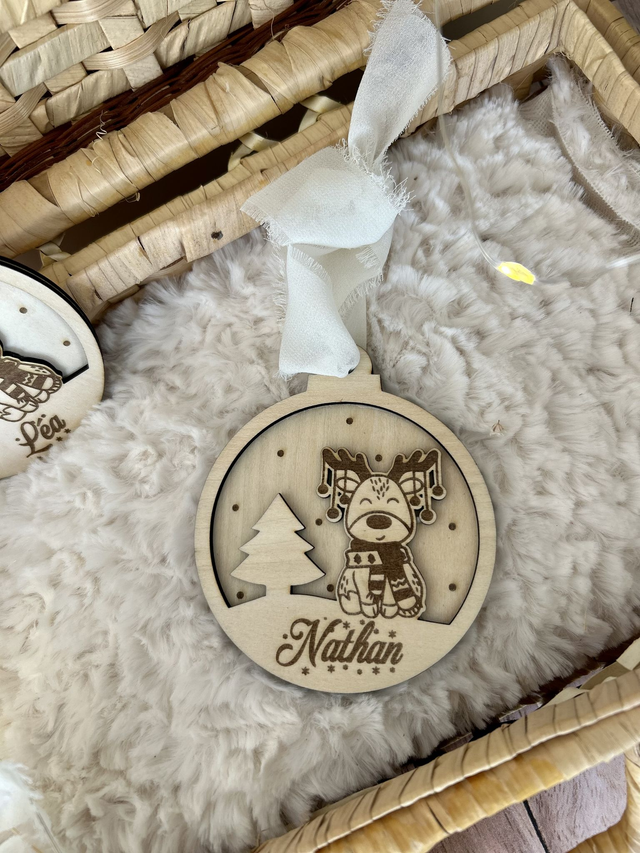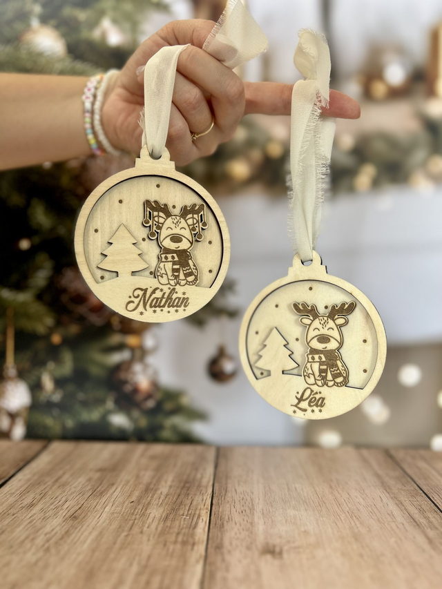 Boules de Noël personnalisées en bois naturel – 4 modèles au choix – Décoration artisanale faite main 🎄
