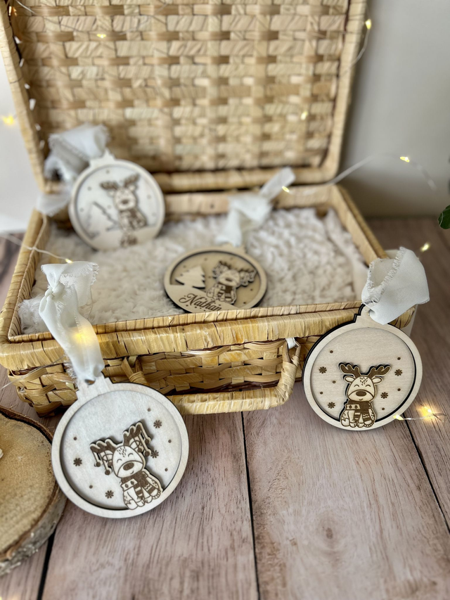 Gravées et découpées à la main dans mon atelier, elles deviennent de véritables souvenirs de famille, à ressortir chaque année 🌟