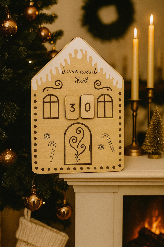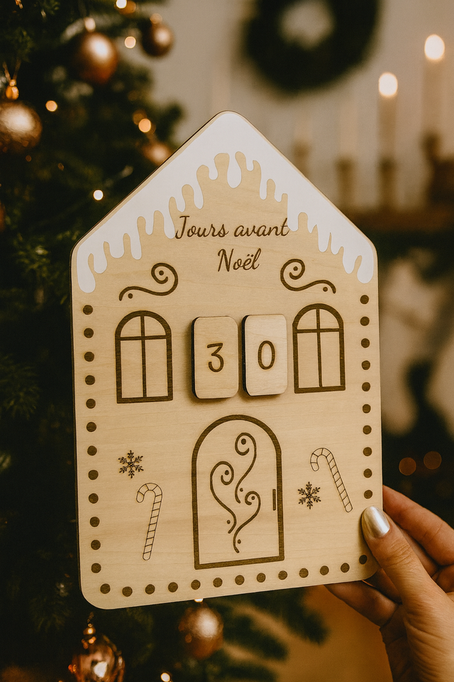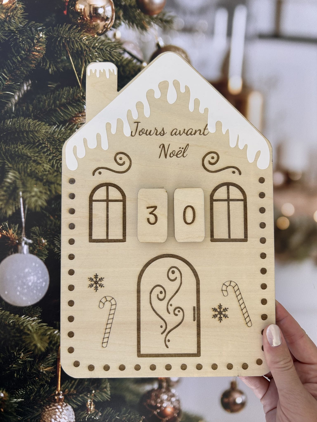 Faites patienter petits et grands avec ce compte à rebours “Jours avant Noël” en bois naturel gravé 🎄