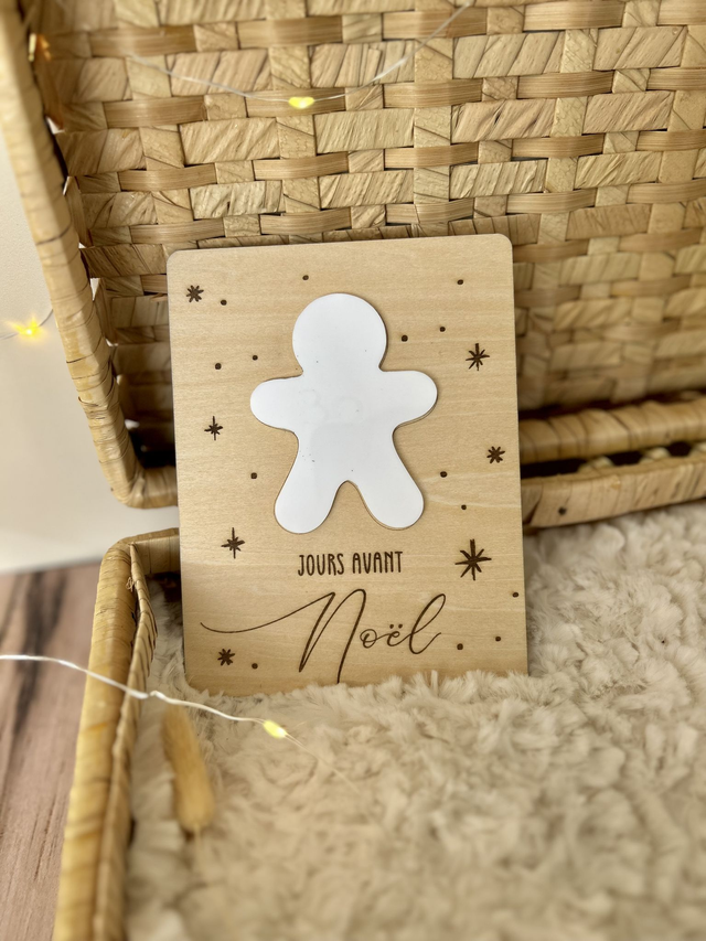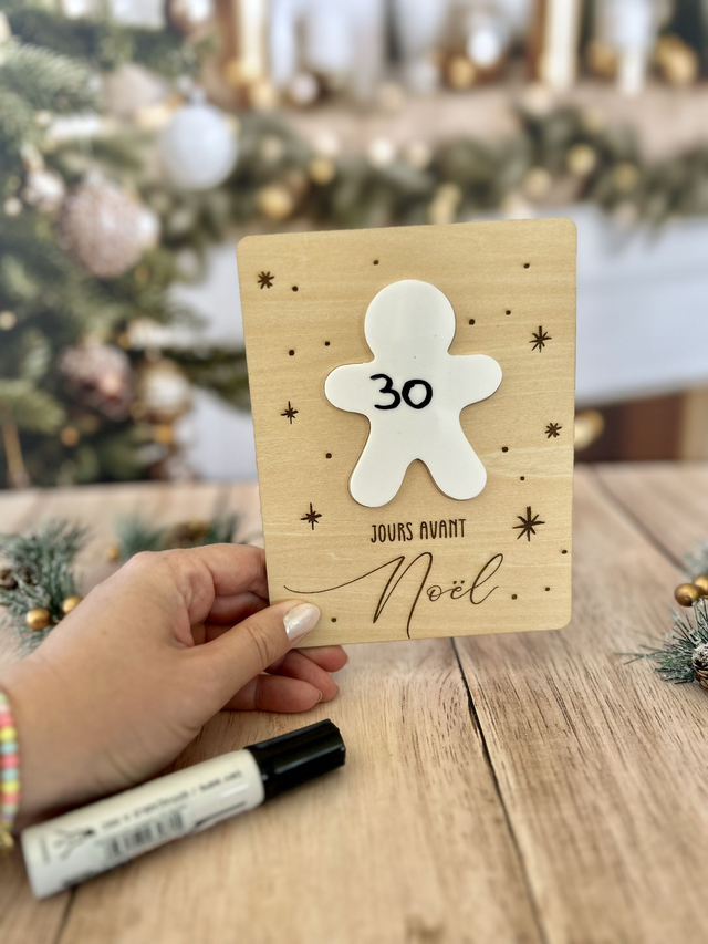 Inscrivez le nombre de jours restants avant Noël sur la surface blanche réinscriptible (stylo effaçable inclus). Un rituel simple et plein de tendresse à partager en famille.