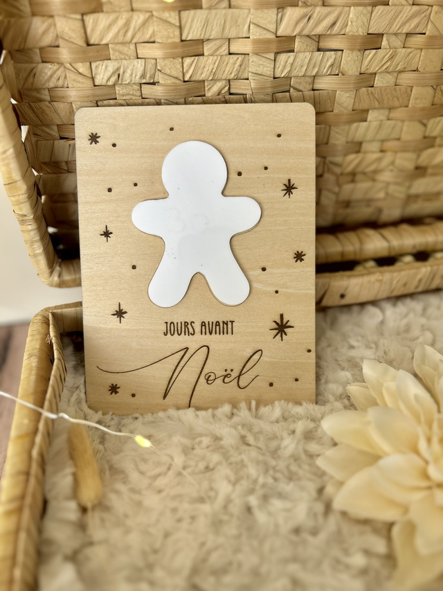 Calendrier “Jours avant Noël” en bois naturel – Décoration artisanale et réutilisable – Compte à rebours de Noël fait main 🎁