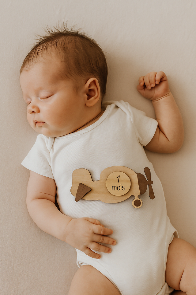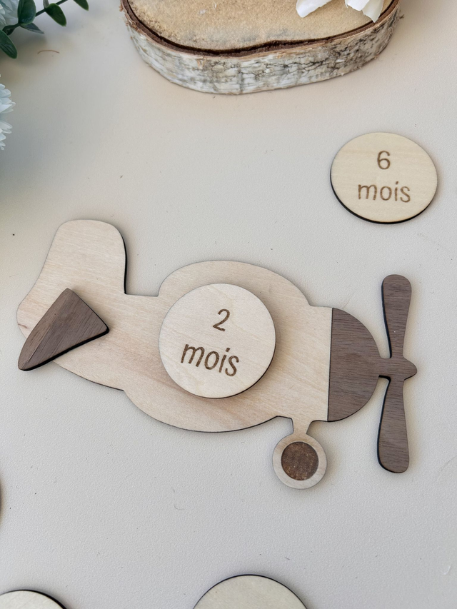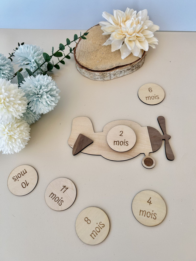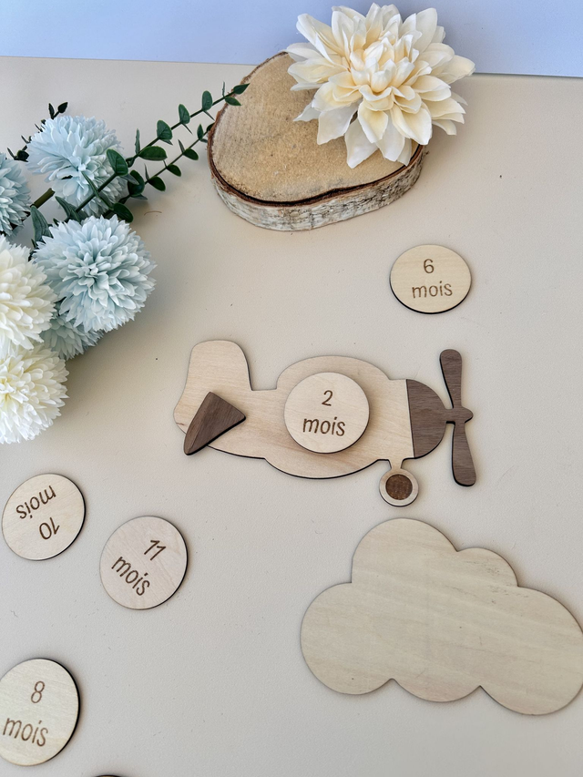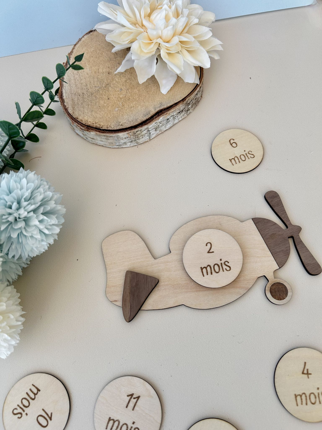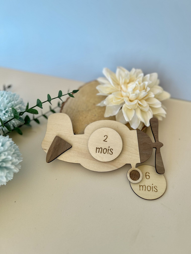 Avec ce bel avion en bois de tilleul et bois de noyer, chaque mois devient une étape magique à photographier.
