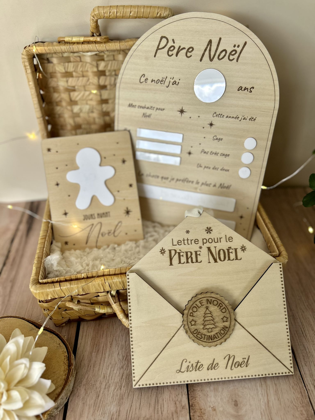 ✨ Faites vivre la magie de Noël avec cette lettre pour le Père Noël en bois naturel 🎄