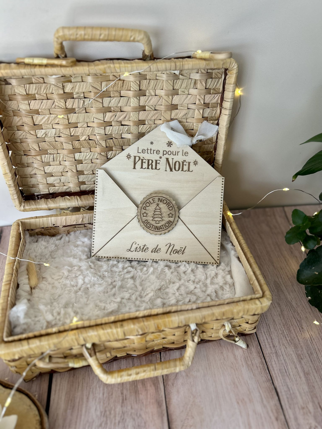 Lettre pour le Père Noël en bois – Liste de Noël personnalisée – Décoration artisanale naturelle