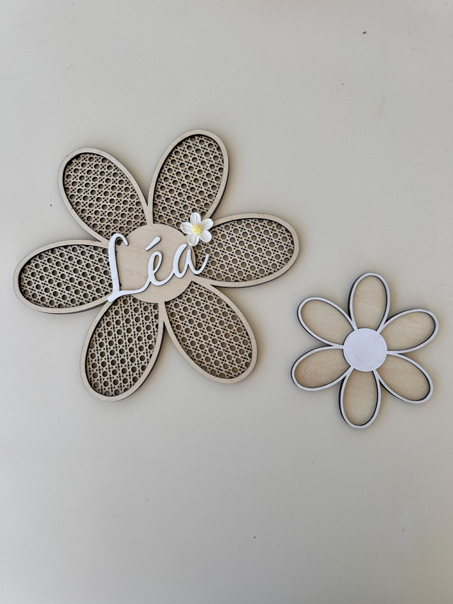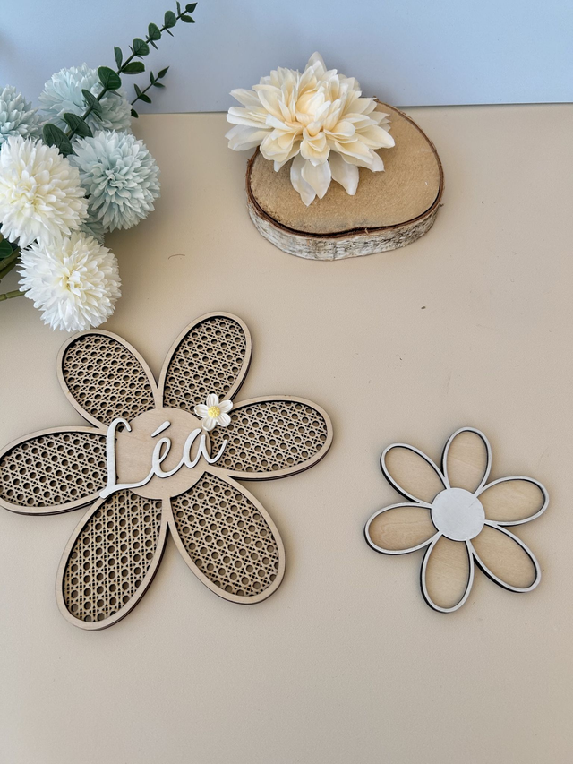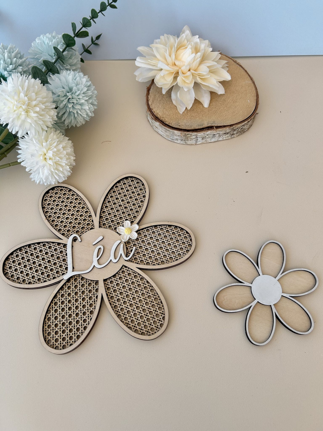 Ajoute une touche champêtre et poétique avec cette marguerite en bois, gravée dans un joli effet rotin.