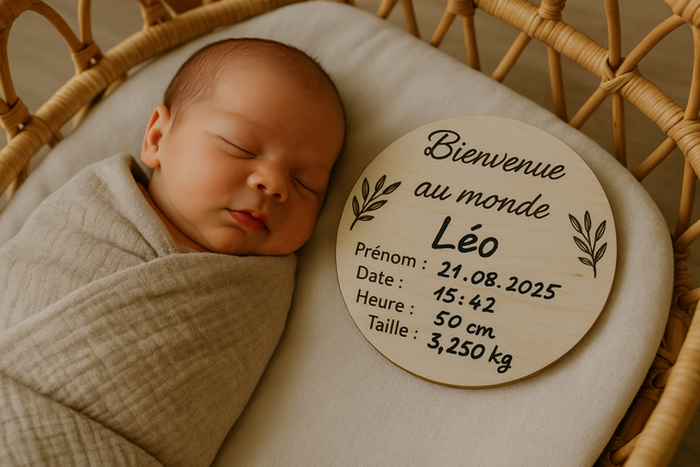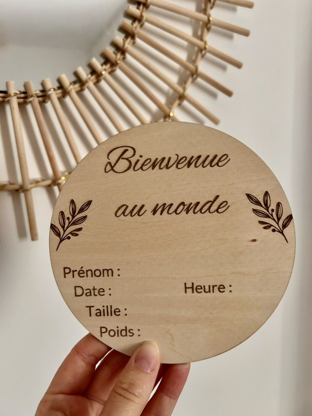 Annoncez la naissance de votre bébé avec douceur grâce à cette jolie pancarte en bois gravé, à remplir avec ses informations de naissance. Un souvenir unique à conserver toute la vie. 💛