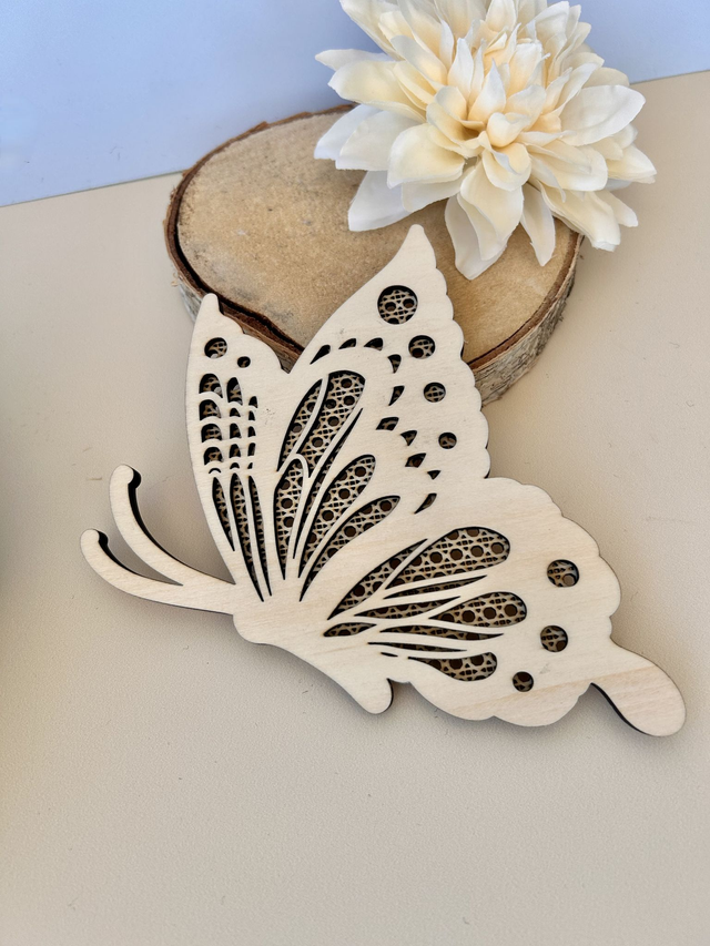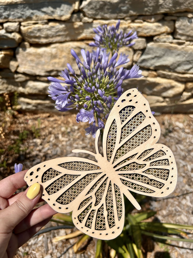 Apportez une touche poétique et naturelle à la chambre de bébé avec ce lot de 2 papillons en bois de tilleul, gravé pour un joli effet rotin.
