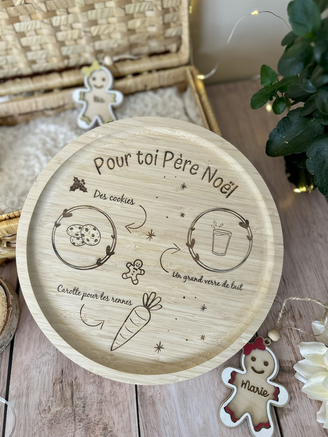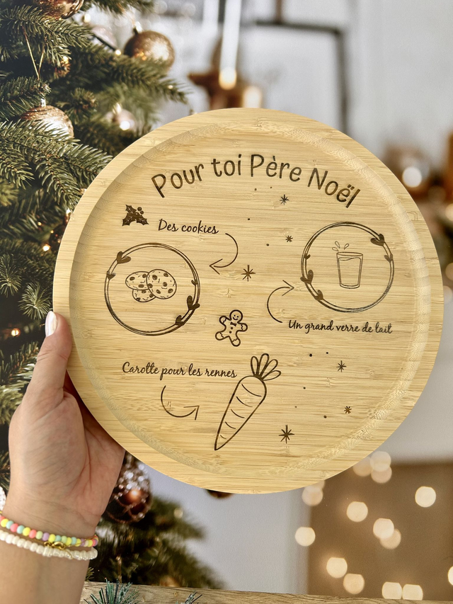 Faites vivre la magie du réveillon avec ce plateau “Pour toi Père Noël” en bois naturel gravé 🎅