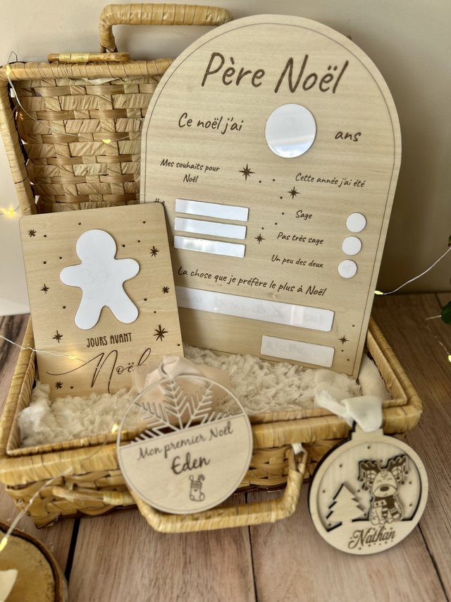 “Une superbe idée ! Mon fils adore remplir son tableau chaque Noël. La qualité du bois et les finitions sont parfaites 🌿” Marie B