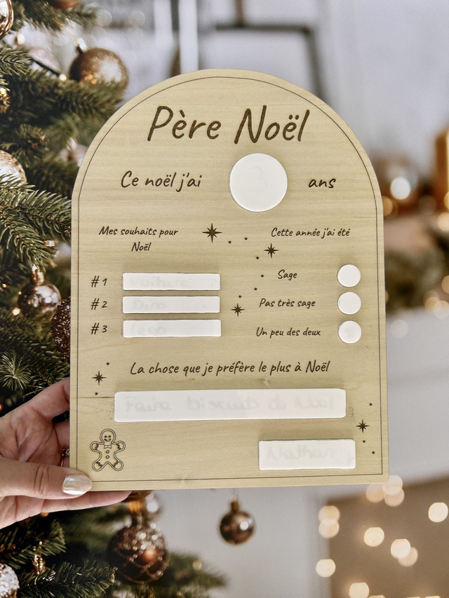 Un support réutilisable où votre enfant peut écrire sa liste de souhaits et cocher s’il a été sage cette année 💛